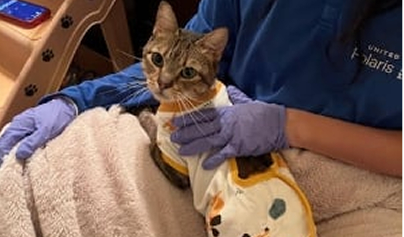 Rocky, a cat, had a rough year, developing several conditions that required expensive vet care. It started in July, when he stopped eating, acted lethargic and limped. His pet parent took him to the vet where they ran a number of diagnostic tests and eventually determined he had a cancerous mass in his abdomen that had spread to his organs. He required a surgery where the doctors make an incision in the chest wall to access the organs inside the chest. During the surgery, doctors discovered he had nerve paralysis, fluid around the lungs, and eye ulcers. After the surgery, he was hospitalized on oxygen and supportive care including blood transfusions, anti-nauseants, antibiotics, and other medications to treat the other conditions. While on the ventilator, he developed pneumonia, which also needed treatment. Rocky survived all his medical emergencies and is still recovering at home, being fed through a feeding tube, said his pet parent.